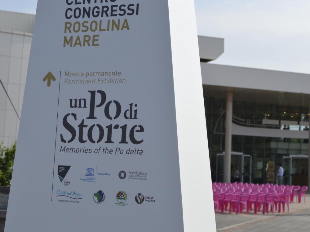 The multimedia exhibition “The Po for EXPO”, realized in 2015 as part of EXPO Venice, is located in the Rosolina Conference Centre and is easily recognizable from the outside from the big window sticker of a “bùrchio” wooden boat (typical Italian barge): the symbol of the final epic chapter in Italian inland navigation. Thanks to river navigation, the Po basin has been the main communication network in northern Italy for centuries. The branches of the Delta have represented an extraordinary mesh of "liquid roads", from which a particular form of civilization has developed, linked to ways of life, knowledge and perceptions that have now disappeared, together with the traditional wooden boats that, for centuries, brought the Delta to life. It is no coincidence that the first short film by Michelangelo Antonioni, “Gente del Po” (People of the Po), was inspired, in the immediate post-war period, by this world, already in an inexorable and agonized decline. Today the images of the famous director welcome the visitor inside an "immersive room", enriched by evocative digital animations.