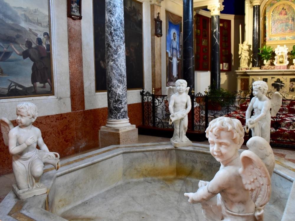 Another legend tells how a storm completely destroyed a man's house, while he and his family remained unharmed. Alongside them, only the statue of a Black Madonna was saved, found intact on the branches of a hedge, where a small pillar was built on which to place the sculpture. Later, some friars decided to take the statue to the nearby church but, miraculously, every time it was moved it returned to its "little pillar". It was thus decided to build a chapel in that place and while building it, they discovered that the spring waters that flowed beside it were tinged with red every time someone offended the Madonna or Jesus Christ. At the same time that water possessed the prodigious power to heal those who approached it with real faith. The miraculous spring was then channelled and the water that flowed out was known as "Bagno della Madonna" (Bath of the Madonna).