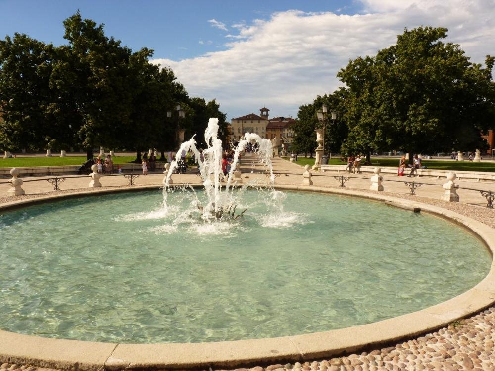 L’ampio spazio che si apre fra i palazzi storici e le eccellenze monumentali patavine, cornice ideale per attività di svago e spettacoli di intrattenimento, si contraddistingue così per la presenza determinante dell’elemento liquido, che delimita l’isola verde al centro della piazza amplificandone gli spazi.