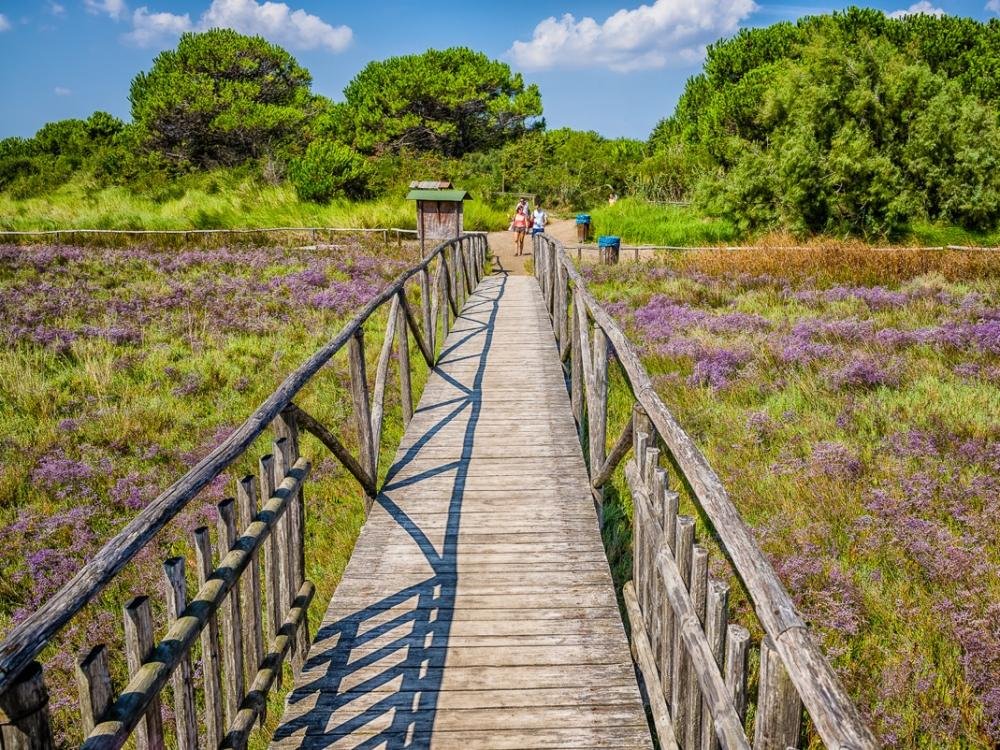 The Coastal Botanical Garden, which can be visited on foot along accessible wooden walkways, has been created with the aim of preserving a unique natural environment throughout the Delta: authentic testimony to the vegetation that is typical of the coastal and marine environment of the upper Adriatic, and of its evolution to modern times. The Botanical Garden was built by the Veneto Region in 1990 in an area designated as a Site of Community Importance (SIC) and is part of the territory of the Veneto Regional Park of the Po Delta. There is a plurality of eco-systems in its 24 hectares of extension: there are 220 plant species coexisting between the pine forest, the dune cordon of the coast and the wetland zone of inland salt waters.